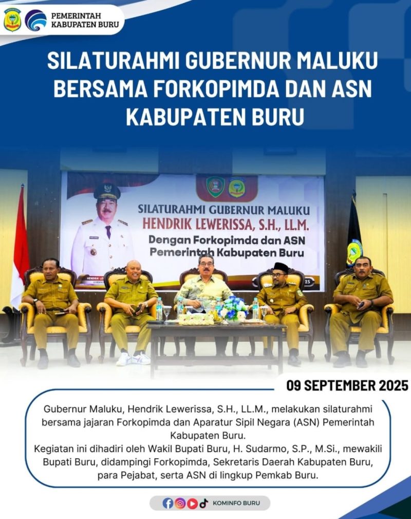 Gubernur Maluku, Hendrik Lewerissa, hadir di Kabupaten Buru untuk bersilaturahmi dengan Forum Koordinasi Pimpinan Daerah (Forkopimda), Sekretaris Daerah, serta para pejabat dan Aparatur Sipil Negara (ASN).