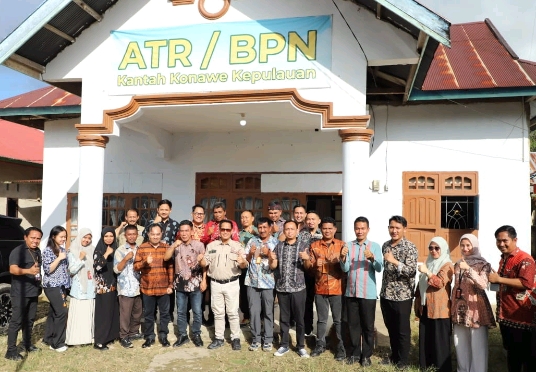 Langara, Sultra – Kepala Kantor Wilayah Badan Pertanahan Nasional (BPN) Provinsi Sulawesi Tenggara, Ir. Rahmat A. Ptnh., QRMP., CODP, melakukan kunjungan kerja ke Kantor Pertanahan Kabupaten Konawe Kepulauan (Kantah Konkep) pada Kamis, (16/10/2025).
