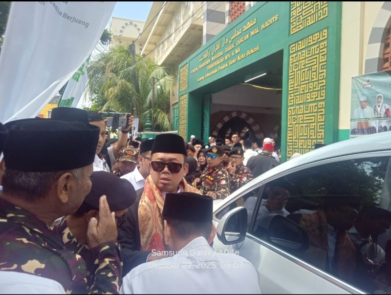 KOTA BEKASI, JABAR – Menteri Agraria dan Tata Ruang/Kepala Badan Pertanahan Nasional (ATR/BPN) Republik Indonesia, H. Nusron Wahid, S.S., M.Si., menghadiri dan memberikan sambutan pada peringatan Hari Santri Nasional 2025 di Pondok Pesantren Mahasina Darul Qur’an Wal Hadits, Jalan Kemang Raya No. 50 Jatiwaringin Pondokgede Kota Bekasi pada Rabu (22/10/2025).