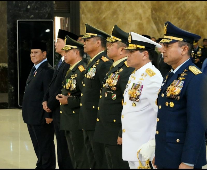 JAKARTA – Presiden Republik Indonesia Prabowo Subianto memberikan penghormatan terakhir kepada jenazah tiga prajurit terbaik TNI yang gugur dalam penugasan Misi United Nations Interim Force in Lebanon (UNIFIL), yakni Mayor Inf (Anm.) Zulmi Aditya Iskandar, Serka (Anm.) Muhammad Nur Ichwan dan Kopda (Anm.) Farizal Rhomadhon, dalam Upacara Persemayaman dan Pelepasan yang berlangsung khidmat di Gedung VVIP Terminal 3 Bandara Internasional Soekarno-Hatta, Jakarta, pada Sabtu (4/4/2026).