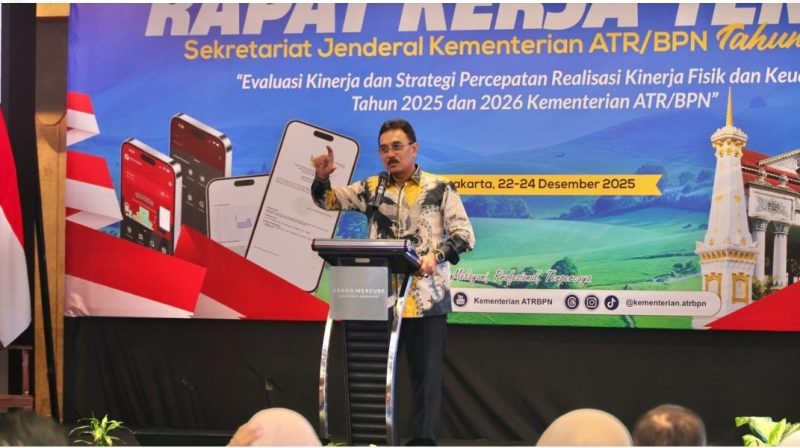 Yogyakarta, Jateng – Peran tata usaha menjadi pesan yang ditekankan oleh Sekretaris Jenderal Kementerian Agraria dan Tata Ruang/Badan Pertanahan Nasional (ATR/BPN), Dalu Agung Darmawan, saat menutup Rapat Kerja Teknis (Rakernis) Sekretariat Jenderal, Selasa (23/12/2025).
